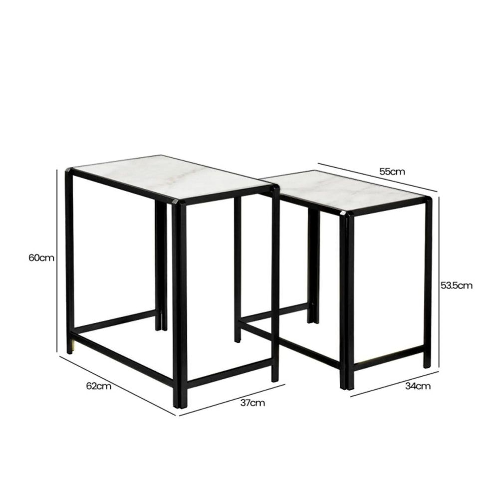 Nest of Tables - White Marble and Black Metal - Set of 2
