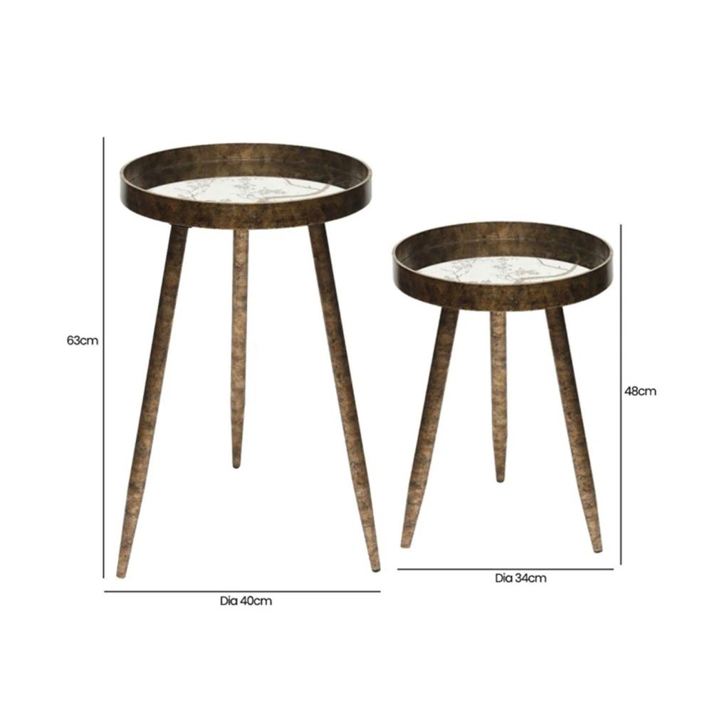 Nest of Tables - Antique Gold Metal - Round - Set of 2 - Tray