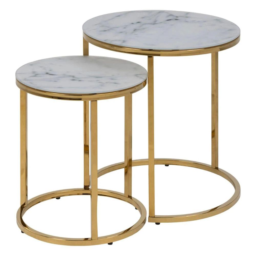 Alisma Nest of Tables - Set of 2 - Round - White Marble and Gold Metal