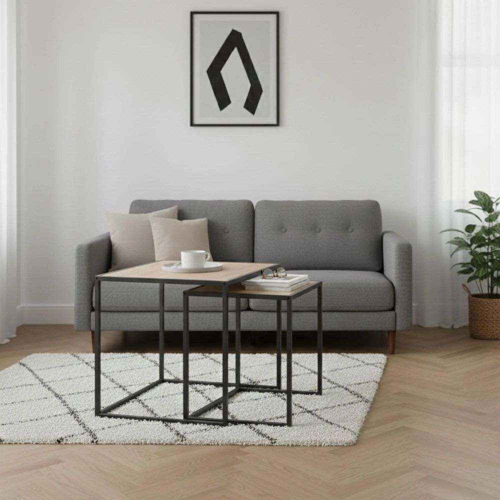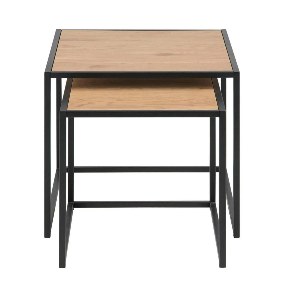 Seaford Nest of Tables - 2 - Square - Oak and Black Metal