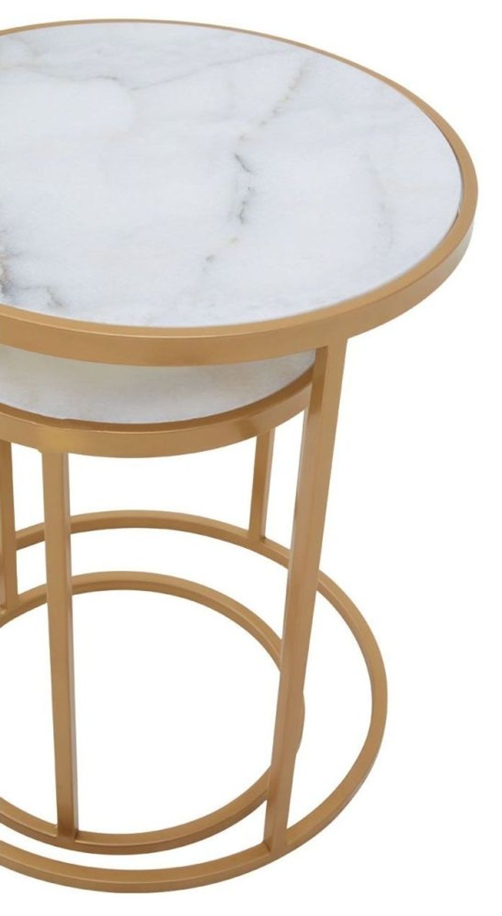 Colva Nest of Tables - Set of 2 - White Marble with Gold