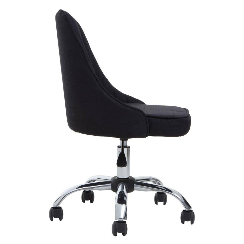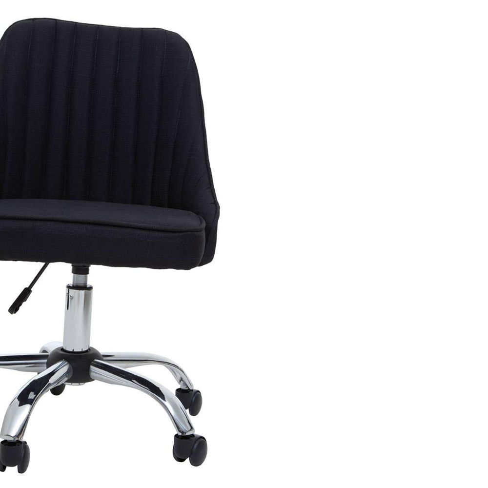 Item Code: 2406294 This chair will bring elegance to the home office space with its understated profile.Featuring a tailored profile with its channel tufting this swivel chair adds a chic accent to the home office space. The black fabric contrasts beautifully with the chrome finish claw base and black castor wheels.