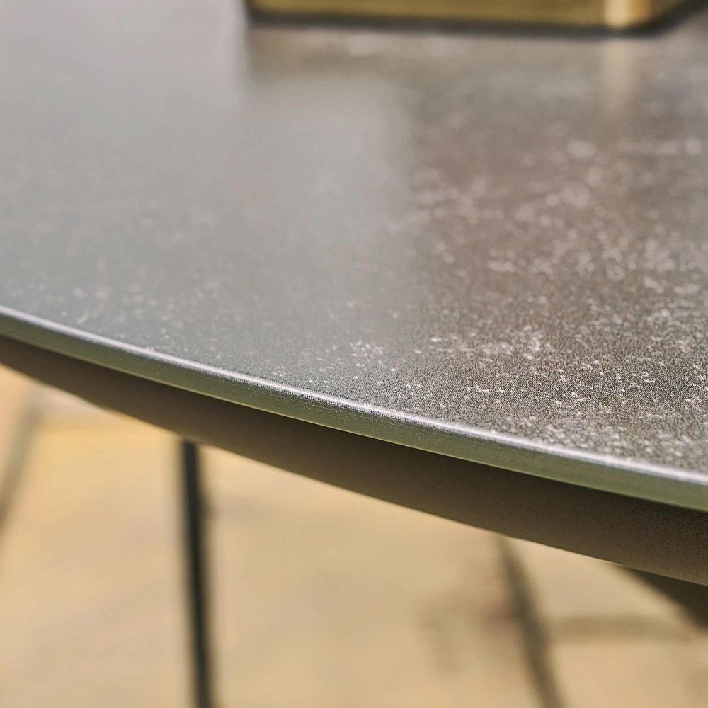 - A ceramic-printed glass tabletop that?s stylish, durable, and easy to maintain.