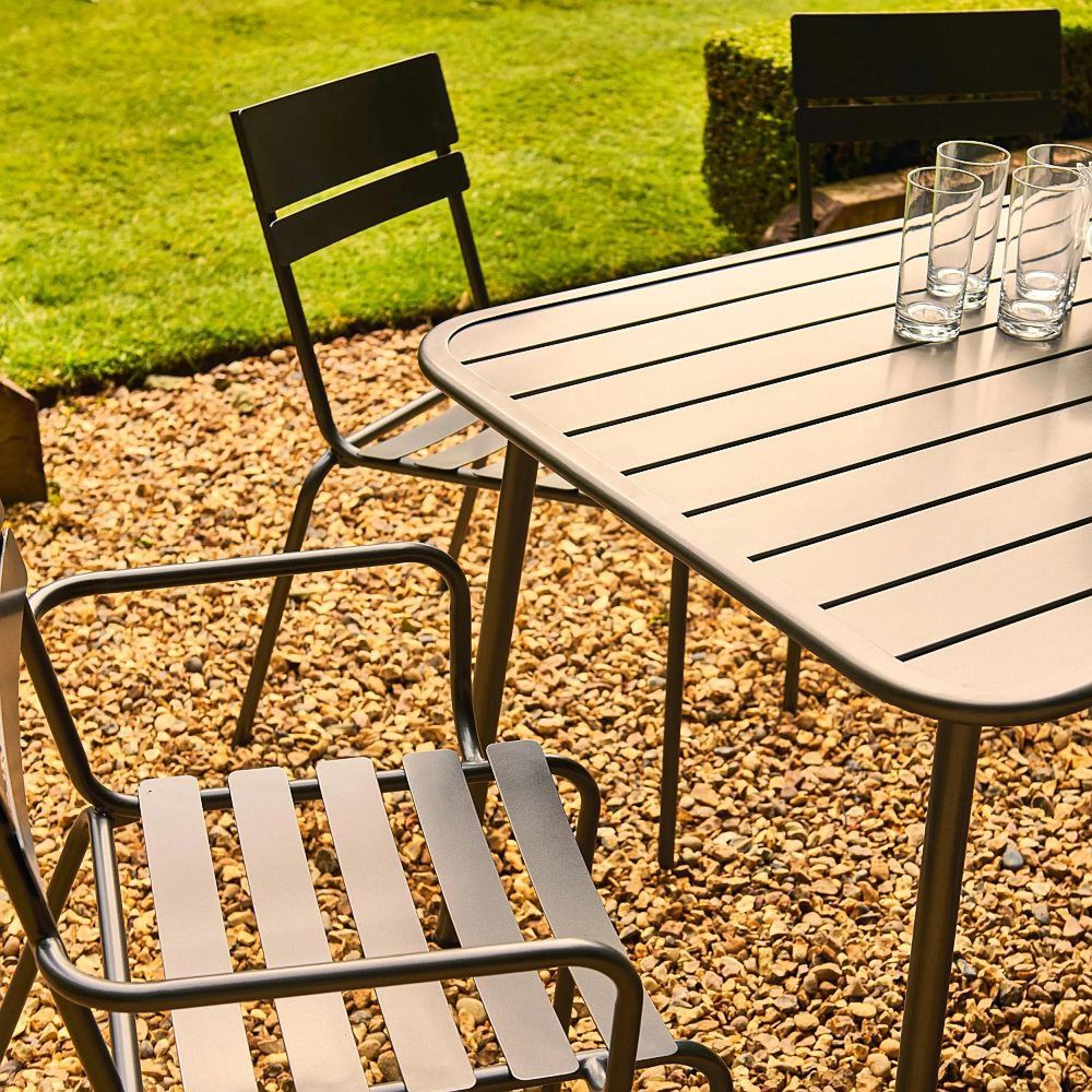 The Oslo Metal Side Chair is built from powder-coated steel for durability and weather resistance, making it a smart choice for both indoor and outdoor use. Its slim, modern frame offers reliable support and a clean, minimalist look that fits seamlessly into a variety of spaces. Lightweight yet sturdy, it's a versatile seating option that pairs well with any table in the Oslo range.