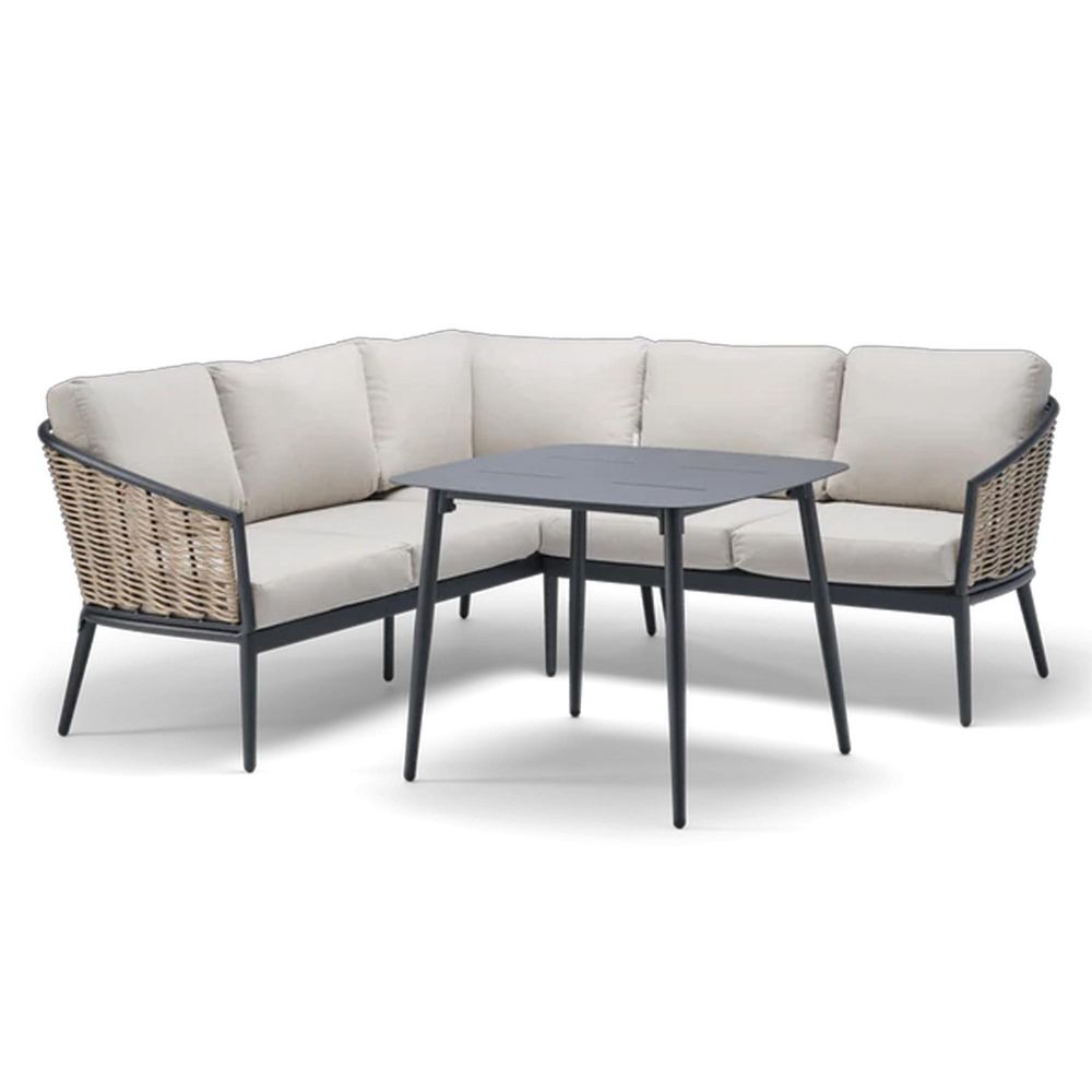 Item Code: 8304 The Pavilion Square Casual Dining Set offers comfortable seating for up to five guests, combining durability with style. Crafted from robust aluminium and hand-woven rattan, it ensures long-lasting outdoor use. Light grey polyester cushions provide both comfort and weather resistance, making this set ideal for casual dining and relaxed gatherings in your outdoor space.Care & maintenanceWe recommend that Pavilion frames are cleaned at least once a year. A pressure hose on a wide nozzle setting is acceptable to use on woven chairs at a distance of approximately one meter from the product. Tables should be cleaned carefully with a sponge or soft scrubbing pad and a cleaning agent. To clear the table top surface, we suggest the use of any multi-surface cleaner. Polyester cushions cab be cleaned using warm water and a cloth. Harsh chemicals should not be used to clean the cushions.