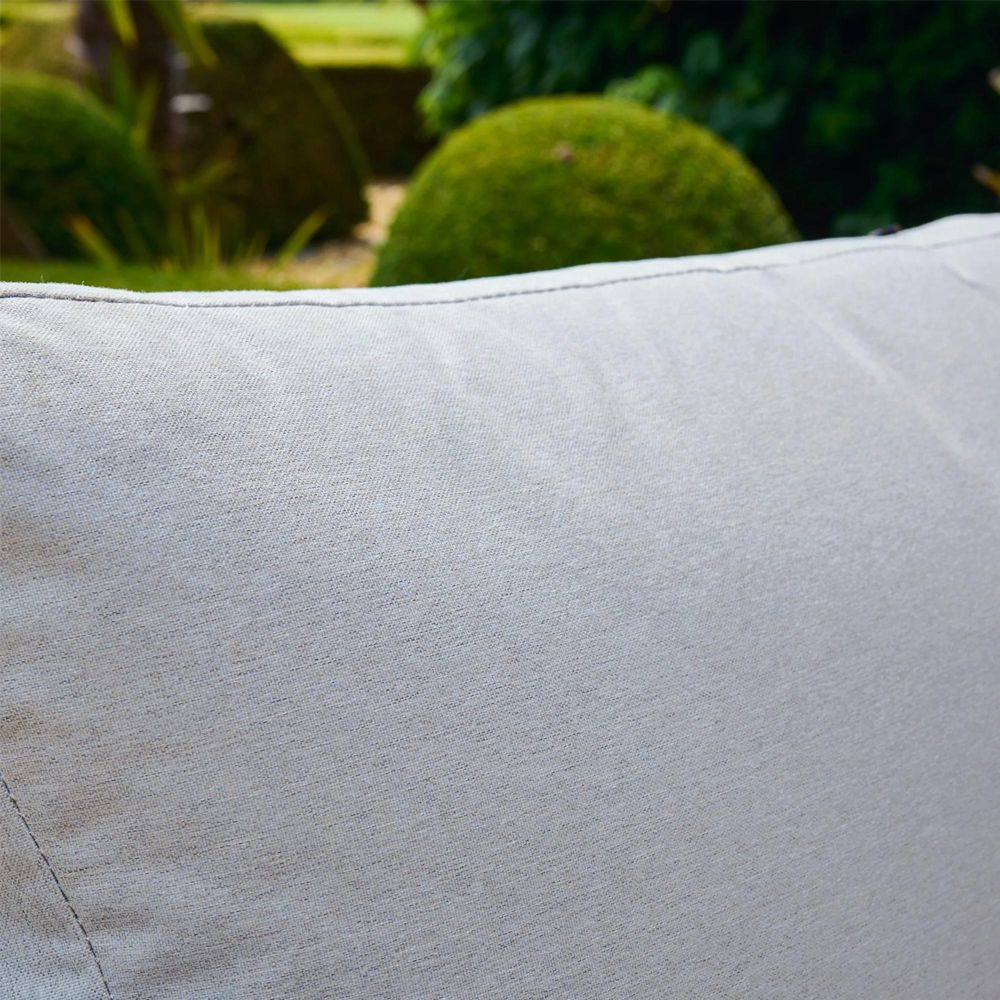 - Light grey polyester cushions for comfort and durability.