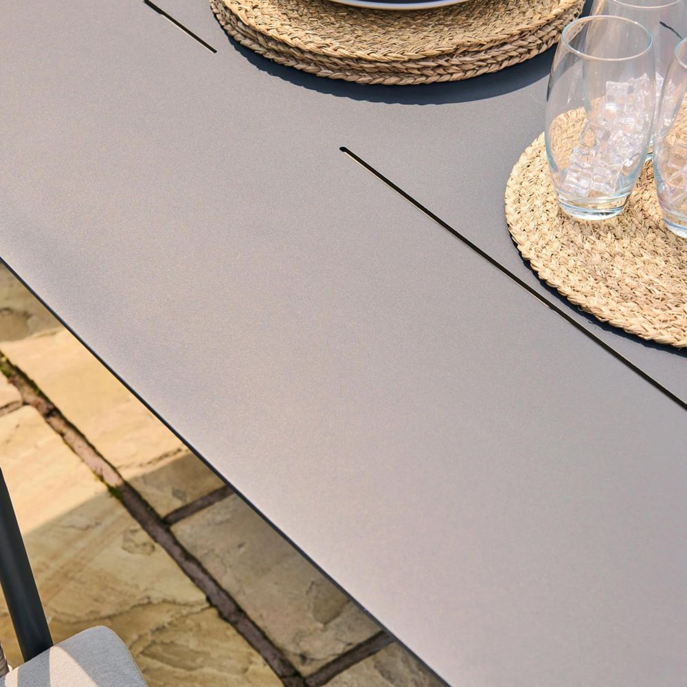 Bring modern style and durability to your outdoor dining area with the Pavilion 6 Seater Rectangular Dining Set. The sleek powder?coated aluminium table offers a clean, contemporary look that?s built to withstand year?round weather, perfect for everyday meals or relaxed outdoor entertaining. The set includes six Pavilion Armchairs, each crafted with a robust aluminium frame wrapped in hand?woven rattan and finished with light grey cushions for added comfort. Together, they create a stylish, cohesive setting designed for low?maintenance outdoor living.