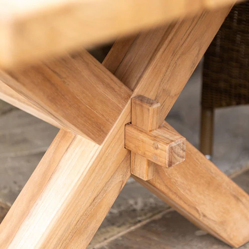 Make a statement with this 2.4m Teak table from our Signature Plank collection. It?s made from one of the strongest timbers in the world, which makes it extremely durable and hard wearing exactly what you want for garden furniture. The cross-base gives the table a stylish and contemporary twist too. The tables come in 2 sizes, 2.4m and 3.0m and the Teak top is made using 5 hand-selected planks, picked for their consistent colour and grain. The stretcher rail locates into the cross frames with a locking peg a traditional joinery detail with a modern twist. Designed to be paired with the Teak Plank Bench this 1.2m bench sits perfectly alongside the Plank table and is a versatile size as you can put 2 together to run alongside either side of the table, or positioned on the end to create extra seating. Looking for accompanying chairs. It works beautifully with chairs from our San Marino, Monte Carlo and Cordial ranges.