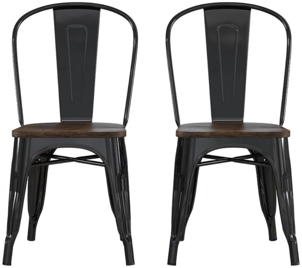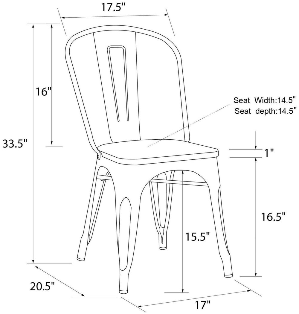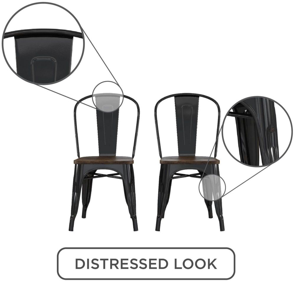 Enchant your guests with the Frio Metal Dining Chair with wood seating from DHP. Hints of its antique sleek style peek out from the distressed wood and antique metal finish. The steel frame and wood seat is extra sturdy for years of comfort for everyone. This chair with a bistro style design is perfect for your dining room, as a spare chair and even in your home office. Compact and lightweight, the Frio is stackable for easy storage and comes in a set of 2.