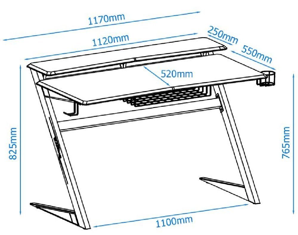 Item Code: AW9210 An elite gamer needs an elite desk, and the Ashe gaming desk is just that. The sleek angled steel frame supports a tough carbon fibre effect worktop, complete with raised platform to support multiple monitors. Free up your desk space and arrange your area however youd like with the customisable add-ons; drinks holder, server rack and underdesk wire storage tray. The open and slanted frame style of the Ashe creates an airy, open-space feel making it ideal for bedrooms and offices.