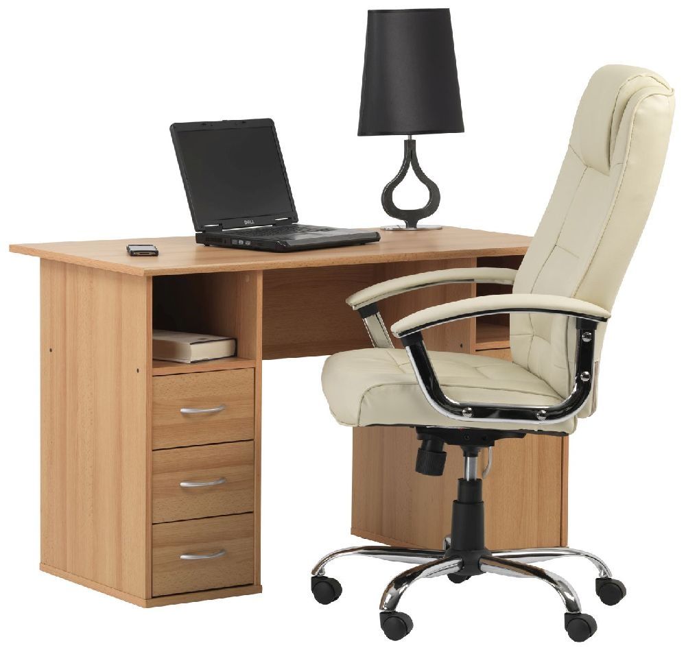 Item Code: AW12010 A stylish home office computer work centre finished in a beech effect.The Martin desk offers a huge amount of practical storage complete with 3 drawers large CPU cupboard and 2 additional compartments. With a choice of 3 beautiful finishes the Martin fits into any decor and the chrome handles add a touch of elegance to your home office.