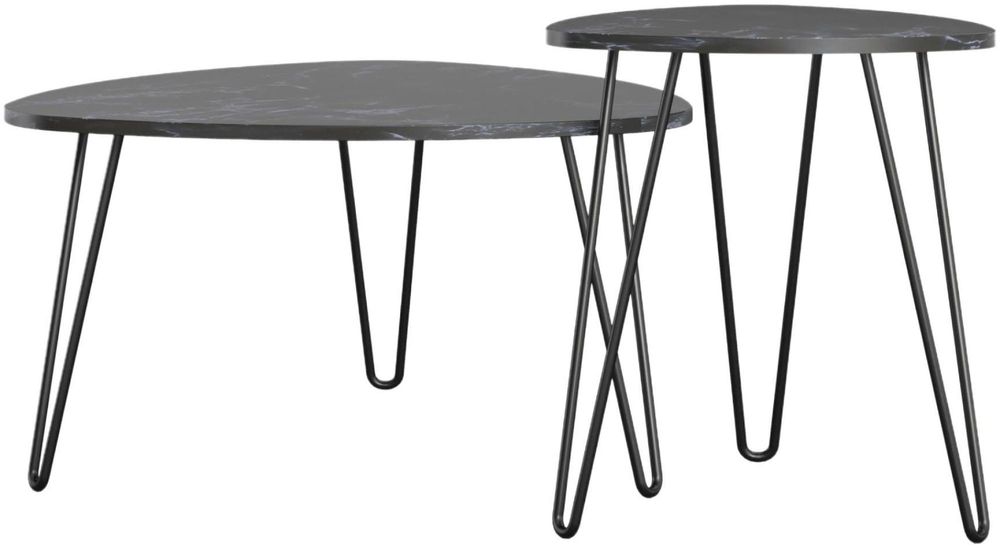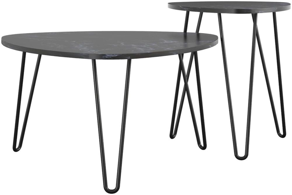 Nowata Athena Black Marble Effect Nesting of 2 Tables - 7021899COMNUK