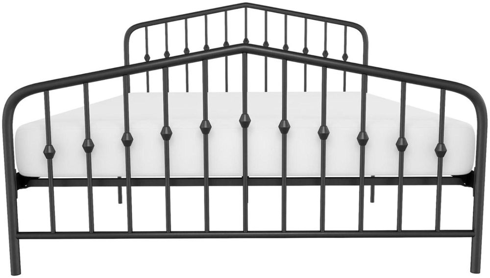 Get inspired to introduce fresh ideas into your bedroom to create a look that is both cozy and elegant. The Nowata Bushwick Metal Bed has a simple design that will perfectly complement rooms of any style and décor. With round finials featured on the headboard and footboard posts, its style and color can be easily combined with bold colors and accessories to brighten up the room. Complete with metal slats, side rails and center legs, this bed’s sturdy construction provides full support and comfort to the body and mattress. The metal slats remove the need for any additional box spring or foundation, while also providing your mattress with much needed support and breathability. For your convenience, the Nowata Bushwick Metal Bed has two base heights – 6" or 11" clearance, to give you the option to use the under bed space as extra storage space for seasonal clothing and accessories. Available in multiple sizes and colors, there is the perfect Bushwick for every home.• Industrial modern design. Headboard and footboard feature decorative round finial posts• Sturdy metal frame construction with metal side rails for guaranteed stability and durability• Center metal rail and legs for added support. Includes metal slats to provide support and comfort• 2 base height options for convenience: 6" or 11" clearance• Available in Full, Queen and King in multiple colors