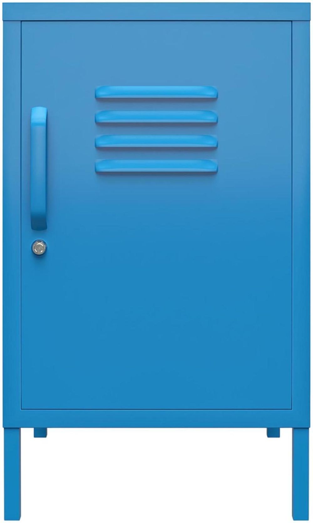 Add a fun and funky end table to your living room with the Nowata Cache Metal Locker End Table. Made of powder-coated metal, the bright blue color adds a fun twist to your living room collection. The metal can be cleaned with a damp cloth so you can easily clean spills. The 2 shelves behind the locker style door are perfect for organizing books, magazines, and electronics. The door features a lock so you can keep your little ones out of your things. A wall anchor kit is included to secure the End Table to the wall. The End Table ships flat to your door and requires assembly upon opening. Two adults are recommended to assemble. Once assembled, the End Table measures to be 27.14”H x 14.96”W x 15.75”D.• Add storage and style to your living room with the Nowata Cache Metal Locker End Table• Made of powder-coated metal, the bright blue color adds a fun pop of color while the metal makes it easy to clean spills with a damp cloth• The 2 shelves behind the locker style door are ideal for storing away essentials. The door offers a lock to keep your items secured• A wall anchor kit is included to prevent tipping injuries• The End Table ships flat to your door and 2 adults are recommended to assemble. The table top can support up to 40 lbs. while each shelf can hold 15 lbs. Assembled dimensions: 27.14”H x 14.96”W x 15.75”D