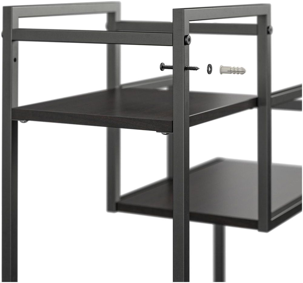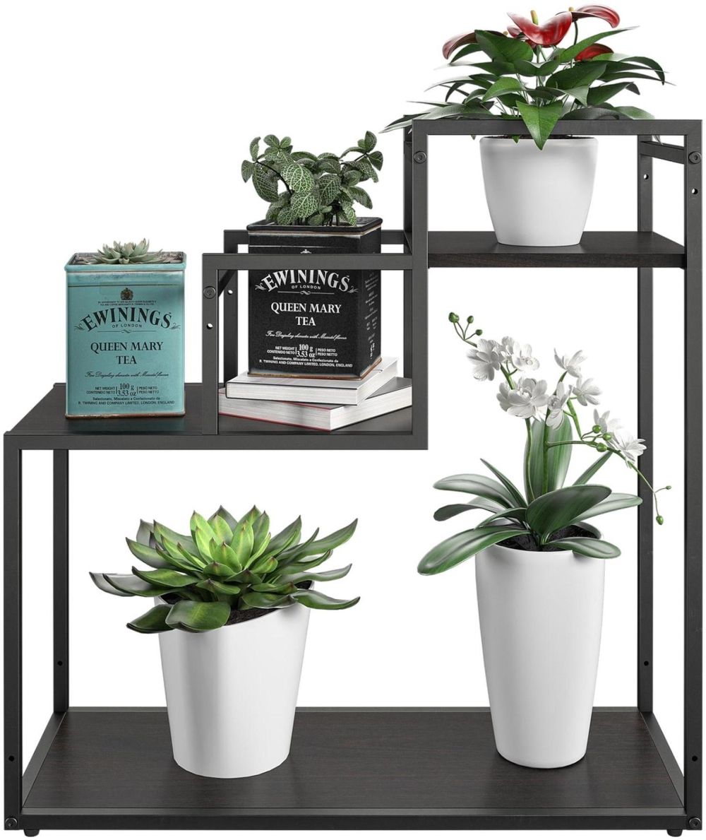 Add a little green to your space with the Nowata Weston Plant Stand. The classic espresso finish on the laminated particleboard shelves pairs with the powder-coated metal frame for a modern, industrial look. The step design adds to the visual appeal of this piece. The top 2 smaller shelves are ideal for individual potted plants while the larger lower shelf can hold several pots and even collectibles and decorations. The Plant Stand ships flat to your door and requires assembly upon opening. Two adults are recommended to assemble. Once assembled, the Plant Stand measures to be 23.39”H x 23.03”W x 8.94”D.• Bring the outdoors in with the Nowata Weston Plant Stand• Made of laminated particleboard and powder-coated metal frame, the rich espresso finish pairs with the metal frame for a trendy industrial look• The 2 smaller shelves can hold individual potted plants while the larger lower shelf is ideal for wider pots or decorations• Complete your room with the entire Weston collection for a coordinated look (each sold separately)• The Plant Stand ships flat to your door and 2 adults are recommended to assemble. Each of the smaller shelves can hold up to 5 lbs. while the larger shelf can hold 15 lbs. Assembled dimensions: 23.39”H x 23.03”W x 8.94”D