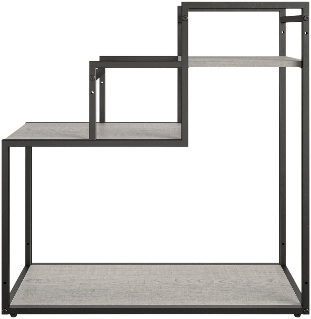 Add a little green to your space with the Nowata Weston Plant Stand. The light brown finish on the laminated particleboard shelves pairs with the powder-coated metal frame for a modern, industrial look. The step design adds to the visual appeal of this piece. The top 2 smaller shelves are ideal for individual potted plants while the larger lower shelf can hold several pots and even collectibles and decorations. The Plant Stand ships flat to your door and requires assembly upon opening. Two adults are recommended to assemble. Once assembled, the Plant Stand measures to be 23.39”H x 23.03”W x 8.94”D.• Bring the outdoors in with the Nowata Weston Plant Stand• Made of laminated particleboard and powder-coated metal frame, the light brown finish pairs with the metal frame for a trendy industrial look• The 2 smaller shelves can hold individual potted plants while the larger lower shelf is ideal for wider pots or decorations• Complete your room with the entire Weston collection for a coordinated look (each sold separately)• The Plant Stand ships flat to your door and 2 adults are recommended to assemble. Each of the smaller shelves can hold up to 5 lbs. while the larger shelf can hold 15 lbs. Assembled dimensions: 23.39”H x 23.03”W x 8.94”D