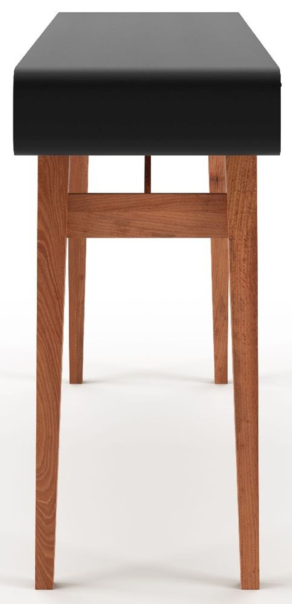 Item Code: AW3150 Stylish but practical, the Pender desk is ideal for the casual home office user. Featuring 3 large under desk drawers the Pender offers plenty of storage, whilst the angled wood legs and curved edges of the worktop give a stylish look to this modern laptop desk, perfectly finished by the smooth black desktop combined beautifully with the wood frame.