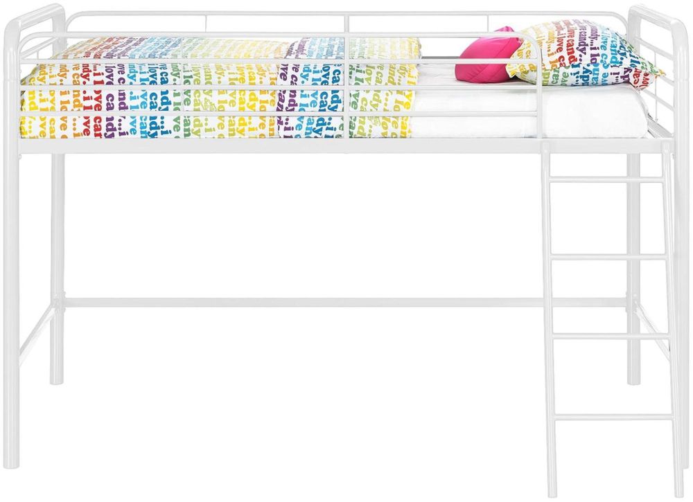 The Soto Single Midsleeper Bunk Bed is the perfect space-saving solution for your home. This loft bed is versatile and multifunctional with an under-bed area that can be used to create a playroom or a study area for your child. The frame is made out of sturdy metal, which makes it durable and solid through years of use.• Slanted ladder giving safe access to top bunk & Plastic feet offer secure footing on most floors.• Metal tube slats with spacers provide strong and stable sleeping platform for any mattress.• 2 x wall brackets• Guard rail height – 350mm. Sturdy metal frame.• Space under bed – 92.6cm for storage drawers or boxes
