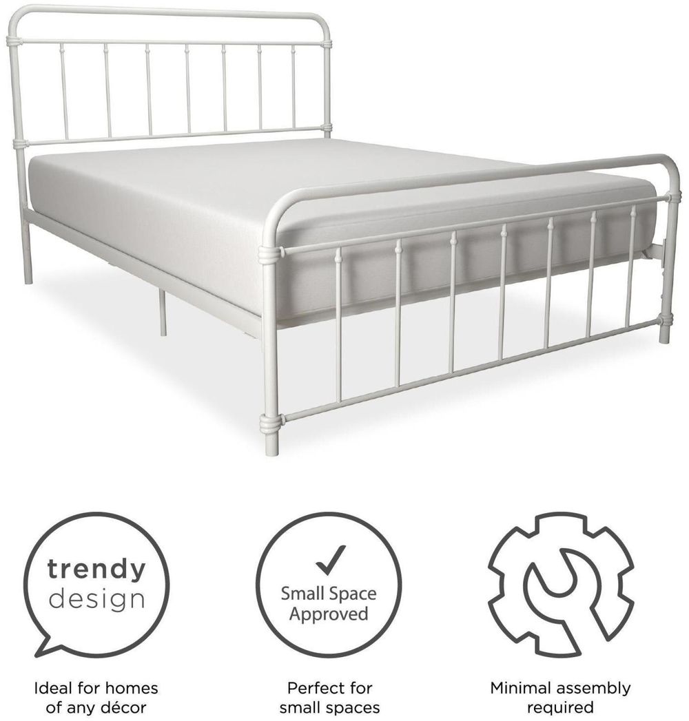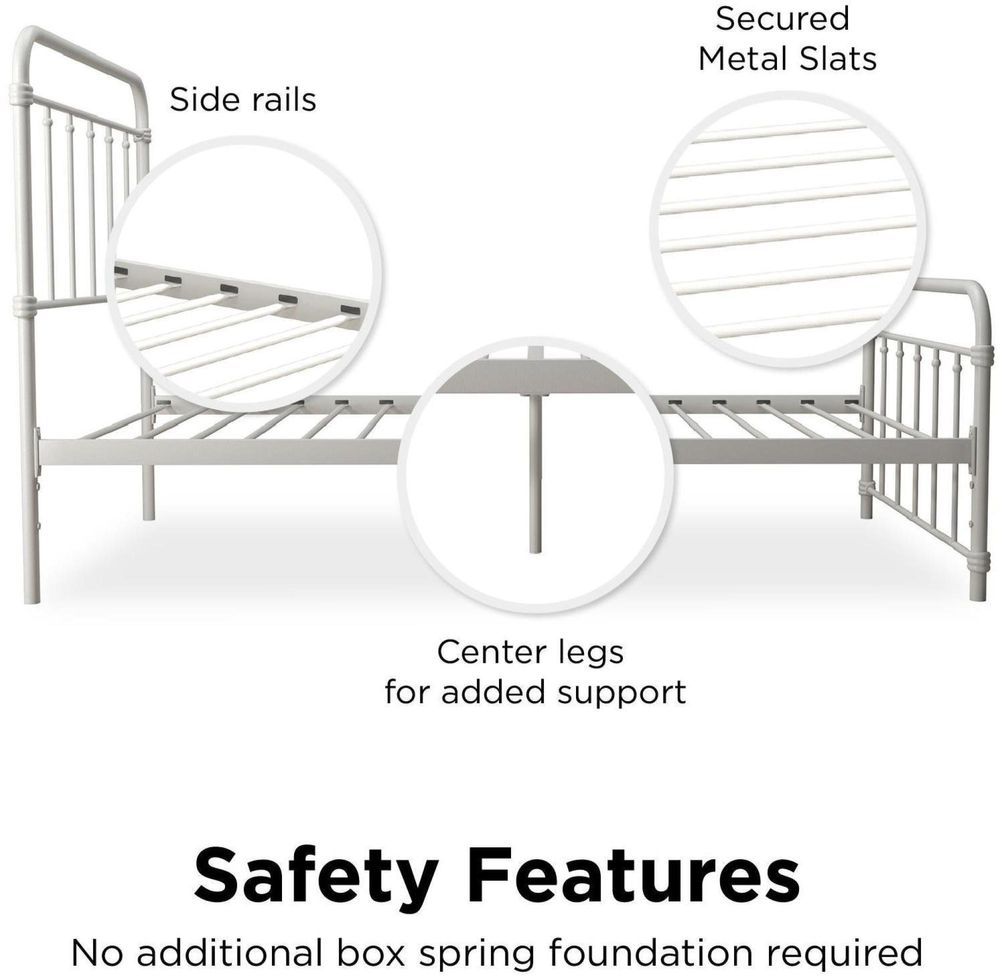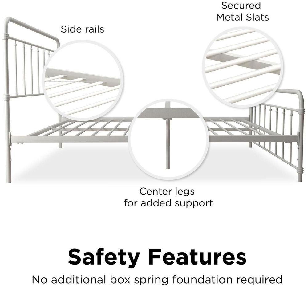 The 1950s were a time of classic lines, simple tastes and solid colors, which we’ve captured here in the stunningly minimalist DHP Wasco Bed, made from sturdy metal frame. No matter your style, this bed is designed to fit your bedroom or provide a fun place to sleep for kids or grown-ups. Liven it up with a colorful duvet and throw pillows, hang a decorative mesh canopy on top to add sophistication, or simply use sheets in solid colors and lined patterns for the full vintage effect. No foundation or box spring needed! The metal slats, center rail and four metal legs offer all the support you need and plenty of comfort all night long. Simply top with a mattress and you’re in for a great night’s sleep! The best part is that the frame is adjustable to provide you with the underbed storage to fit your needs. The Wasco Metal bed is available in multiple sizes in your choice of black, white, bronze or gold.• Vintage design with a sturdy metal frame that features simple, classic lines.• Includes metal slats, a center metal rail and additional legs for extra support and comfort. Metal slat base allows air to pass freely beneath your bed, keeping your mattress fresher longer• Adjustable base height options for convenience: 7" or 11" inch clearance to accommodate your storage needs.• Ships in one box and assembles quickly. Available in Twin, Full, Queen and King size. Offered in multiple colors. 1-year limited warranty.• Product dimensions: 78"L x 42"W x 46"H. Weight limit: 250 lbs. Net weight: 36.5 lbs. Shipping dimensions: 46"L x 37"W x 5"H. Gross weight: 44 lbs.