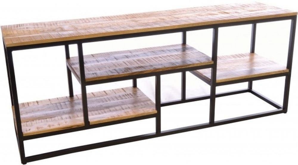 Item Code: OLD15 With a wonderfully eccentric set of shelves this sideboard is bound to grab the attention. Made from powder coated square steel with solid wood shelves in a rustic finish. Each shelf is set in a different height and with crossing over widths to complete to overall style. Ideal for many different rooms and styles it is great to add a unique display unit to many different rooms.