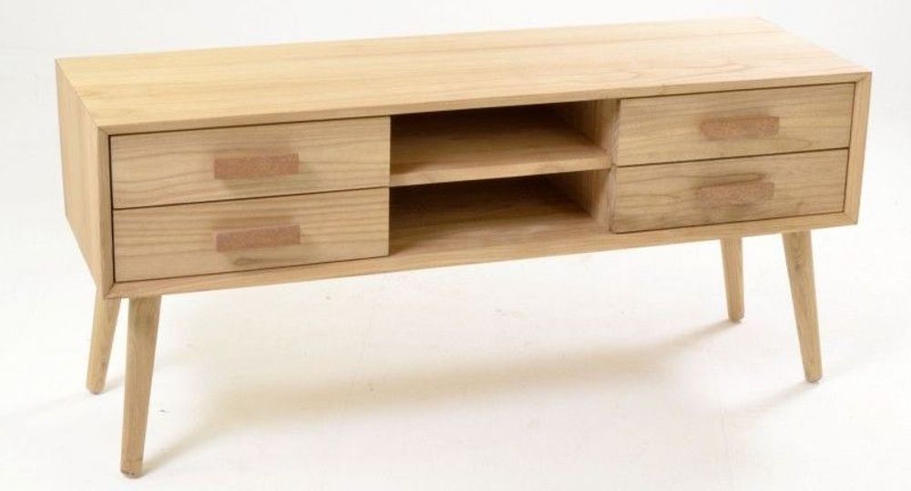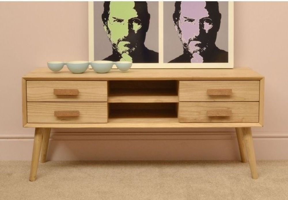 Our Shoreditch TV Unit is a complete entertainment storage space. It's 120cm long so it can hold a hefty TV on top. Plus, it has all the space you need for your other gadgets as well. So there are two open shelves in the front with discreet cable holes at the back, so you can have your remote controlled technology on there such as a satellite-, cable- or set top box.