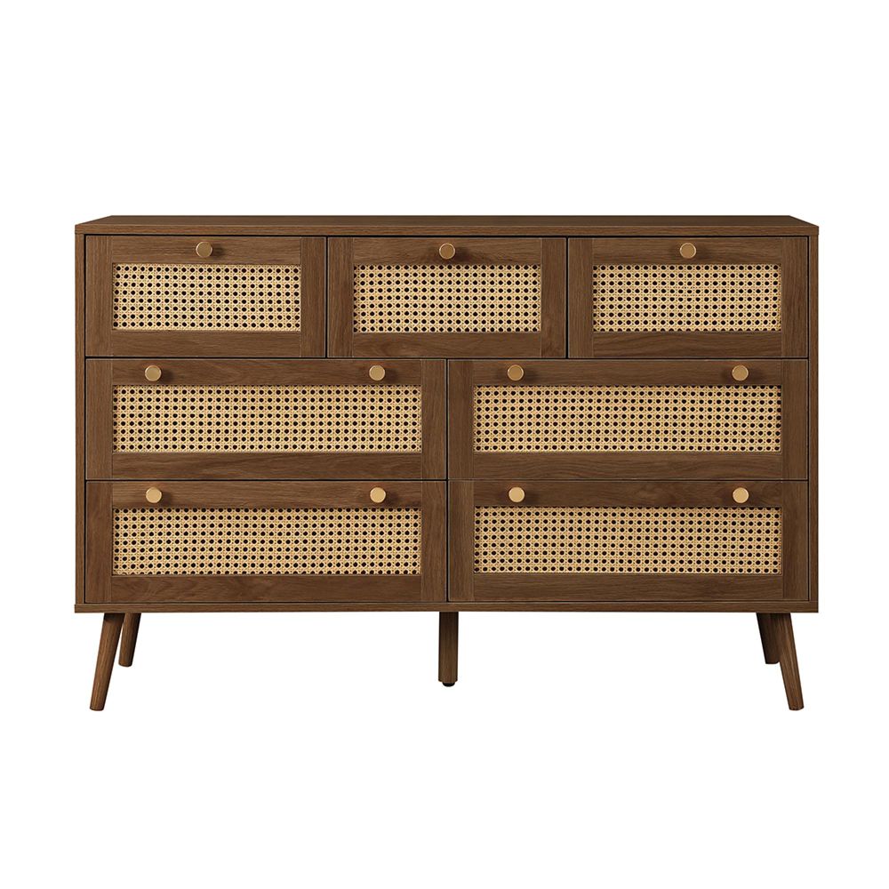 Croxley Wide Chest - 7 Drawer - Walnut and Rattan