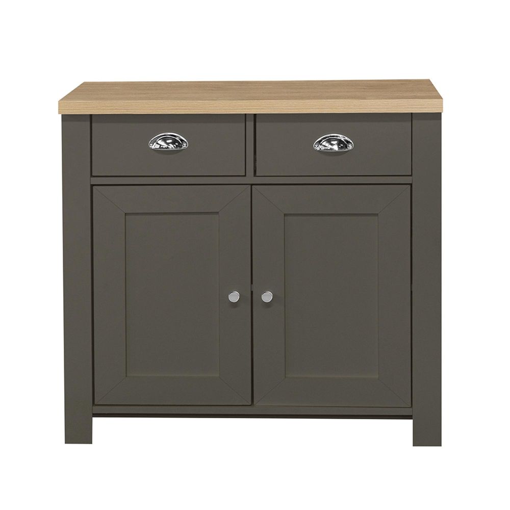 Item Code: HIG22SBDGOK Inspired by classic farmhouse furniture the Highgate range has been designed to complement both modern and traditional homes. The Highgate range is modern, practical, affordable furniture and with stylish silver handles looks fantastic too. Available in cream & oak, grey & oak and navy & oak this range will suite a wide array of interiors.An elegant storage solution for the living or dining room, this Highgate 2 Door 2 Drawer Sideboard is a great way to keep your home looking neat and tidy. Featuring 4 compartment area's making it ideal for both small and large items. The drawers are finished off with silver cup and square handles.Care instructions: Wipe carefully with a soft, dry cloth.