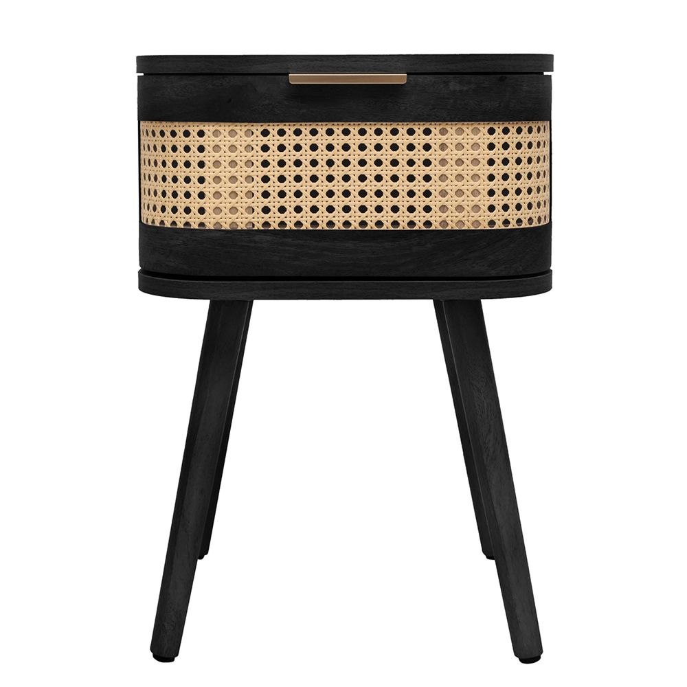 Noah Curved Bedside Table - 1 Drawer - Black and Rattan