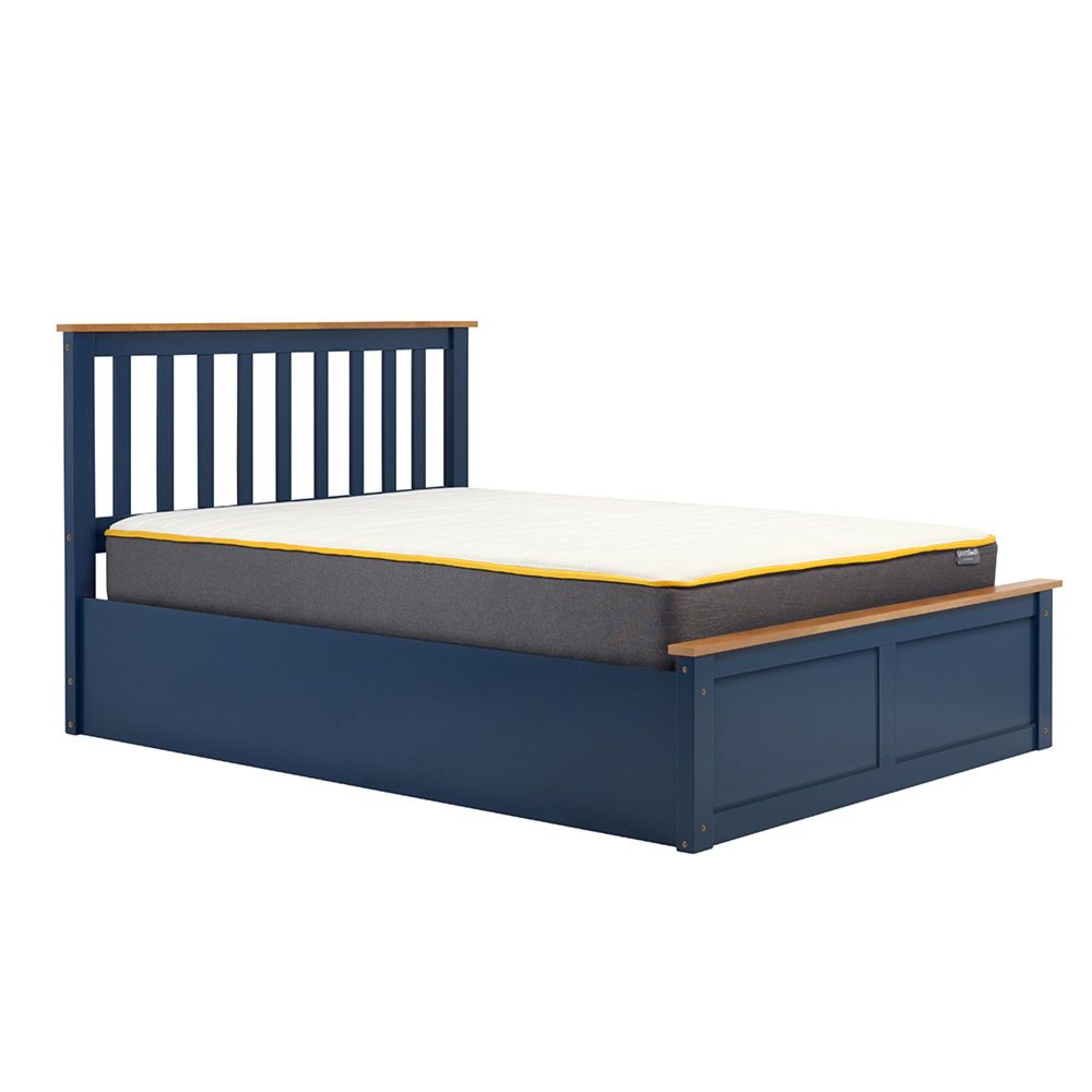 Item Code: PHOTB5NAVV5 One of the highest quality finishes in the range, the Phoenix wooden Ottoman bed provides both class and practicality, with an opening base that provides plenty of storage. The bed is available in pearl grey, stone grey, oak or white. Constructed from solid rubberwood, the oak option has MDF veneered side rails whereas the white option features MDF Melamine side rails. This frame has a sprung slatted base to give natural bounce, adjusting to where pressure is most exerted to provide greater comfort. The gas piston strength on this frame is 588 N. The maximum weight load for the Phoenix Ottoman frame is 350 kg and can support mattresses up to the weight of 45 kg.Please note : the mattress needs to be on the bed for the pistons to work. Birlea beds are only suitable for a UK standard size mattress and the recommended maximum mattress height is 23cm.