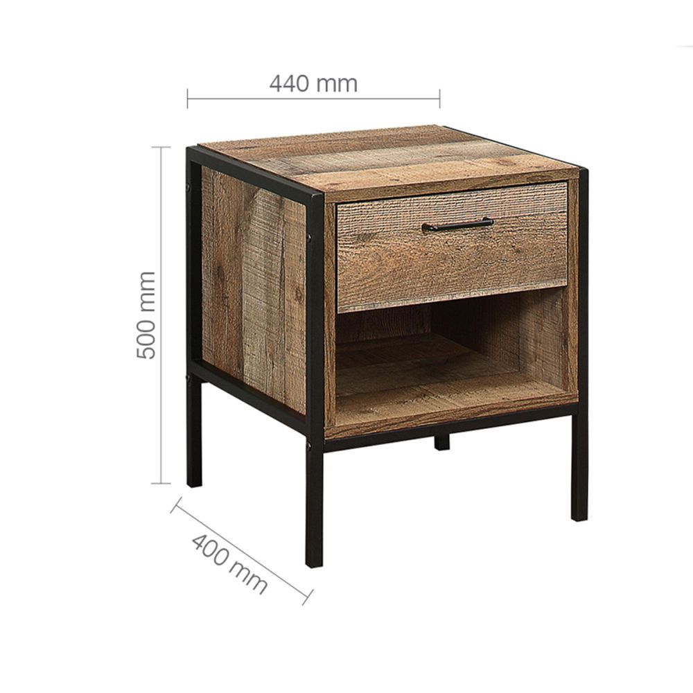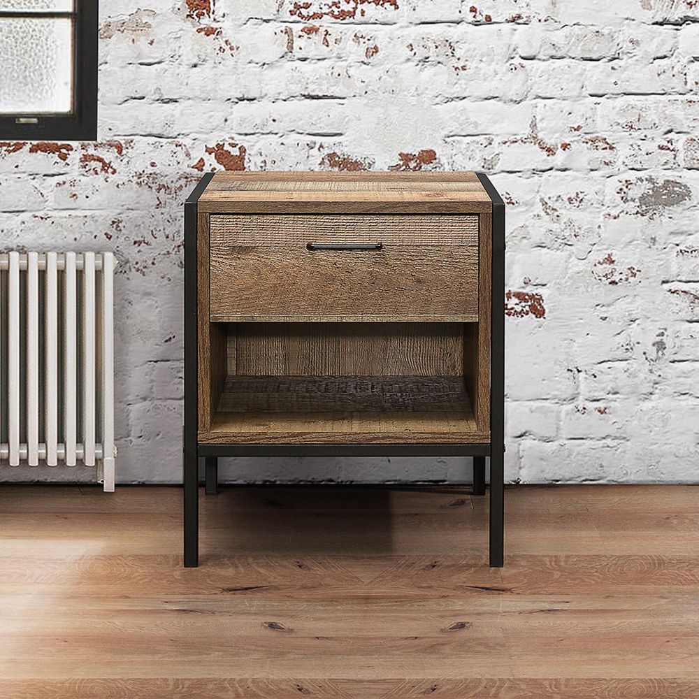 Urban Bedside Cabinet - Industrial Style - 1 Drawer - Rustic Wood