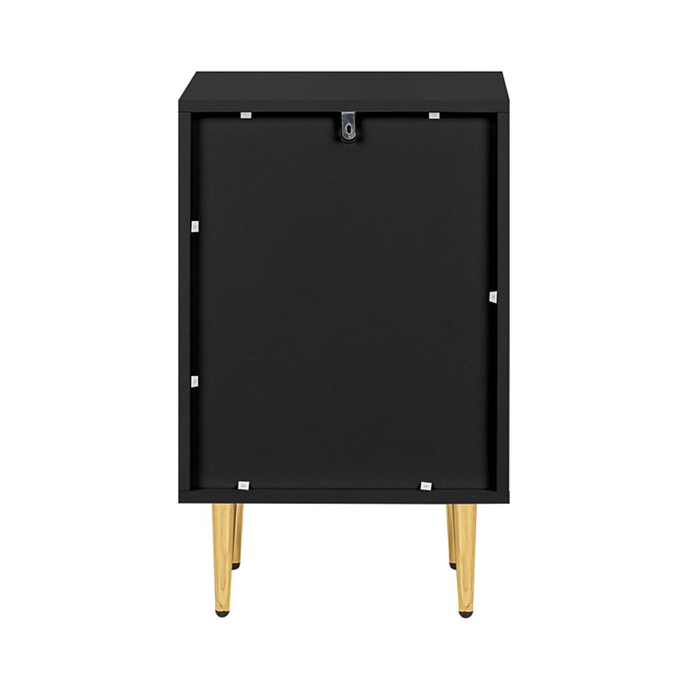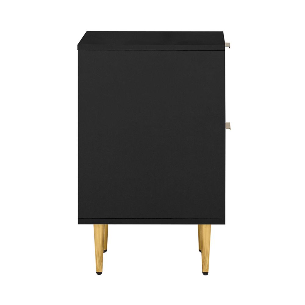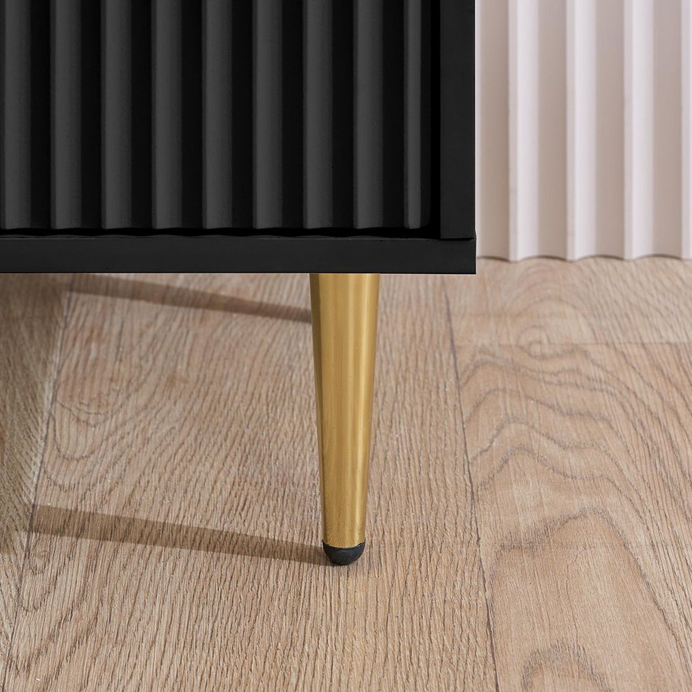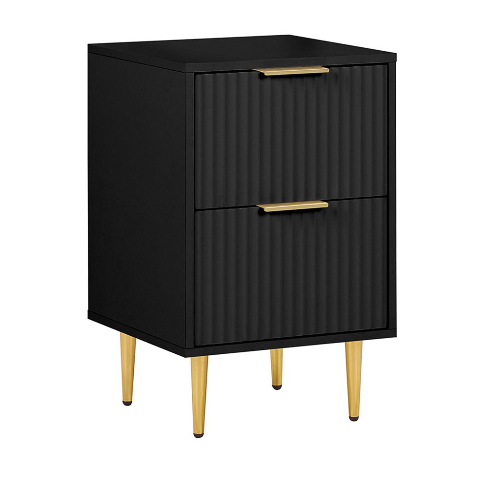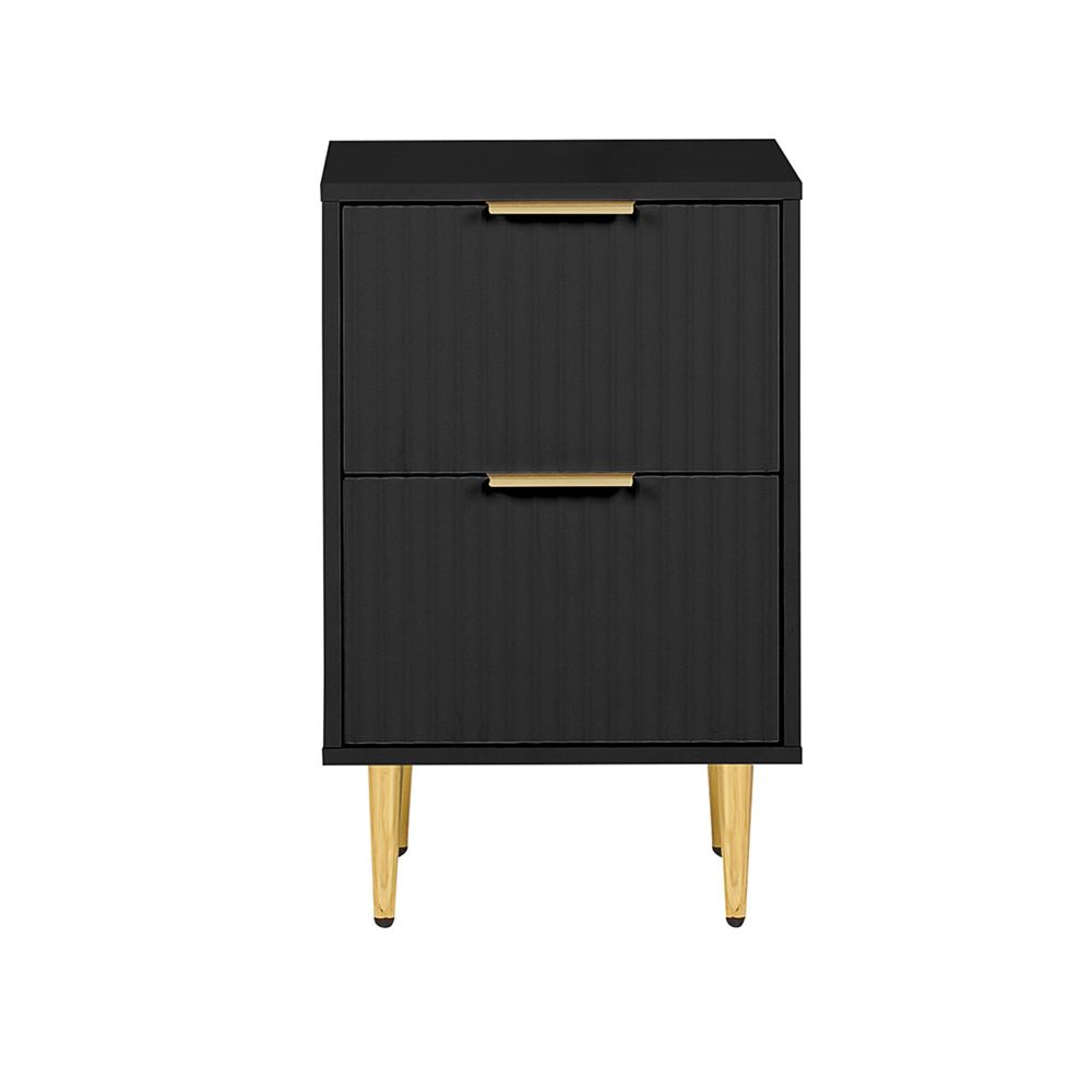 Zara Bedside Table - 2 Drawer - Fluted - Black - Gold Legs
