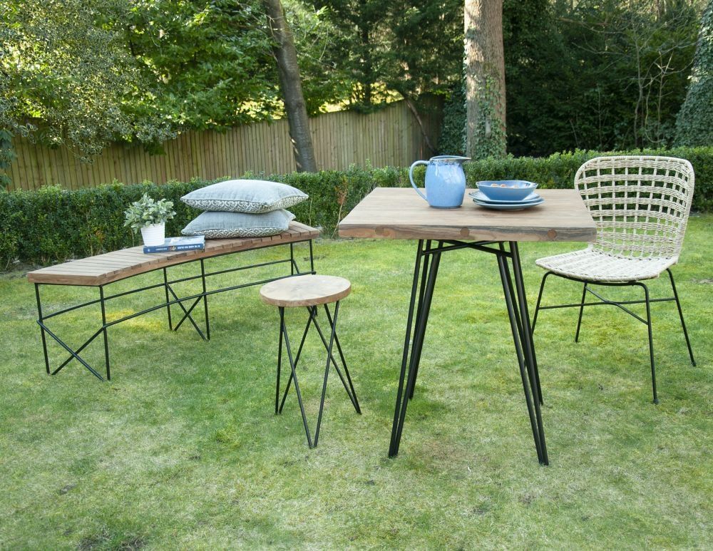 Item Code: BIBI01 Chunky Teak Sits a Top Black Metal Twisted Bases, a Laid Back Option For Indoor and Outdoor.