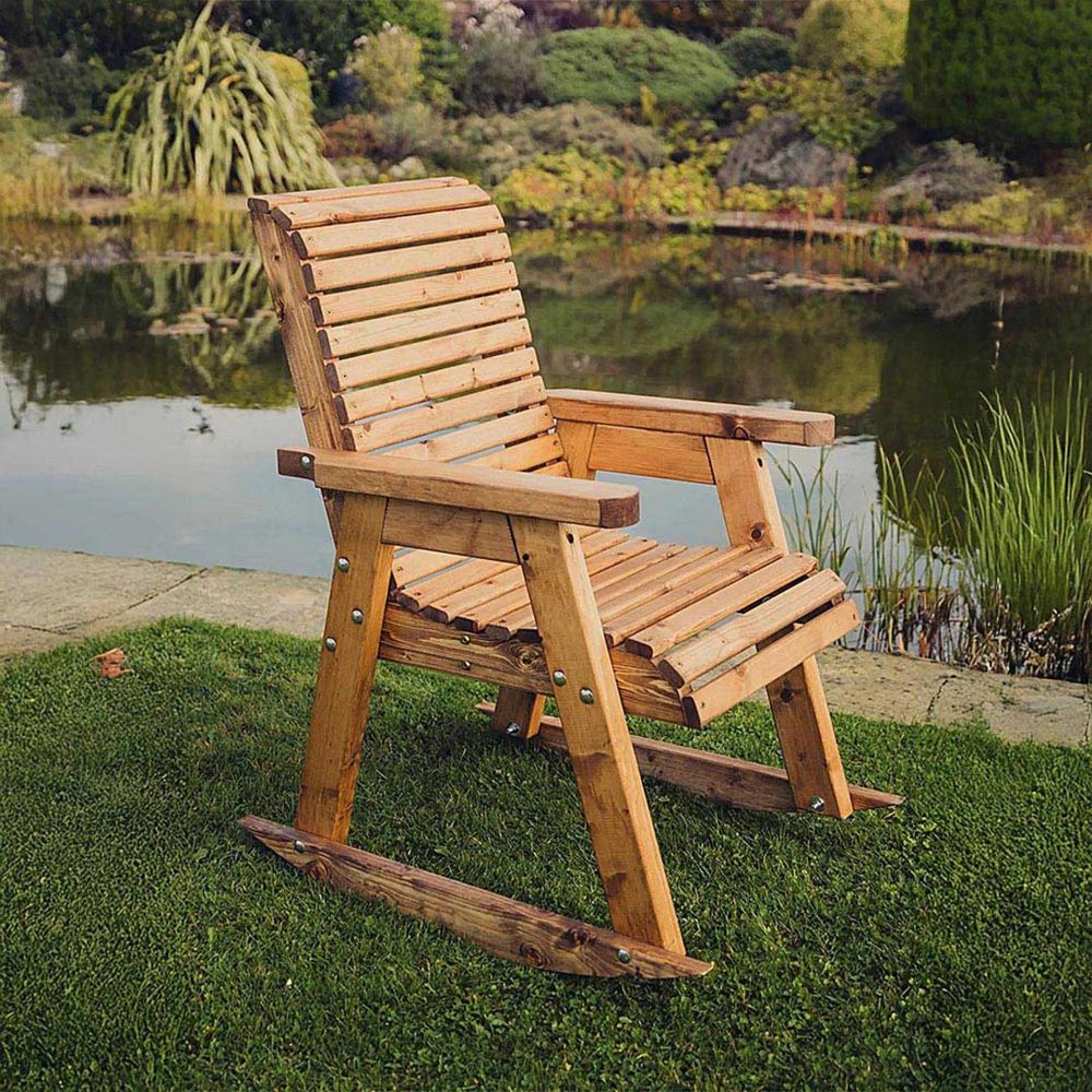 This is a lovely valley styled brown rocking chair, made to sit one person. This beautiful chair has been built by British craftsmen in this unique style using the finest Swedish Redwood. Timber has been pre-treated with a basecoat offering antifungal, mould and also UV protection.