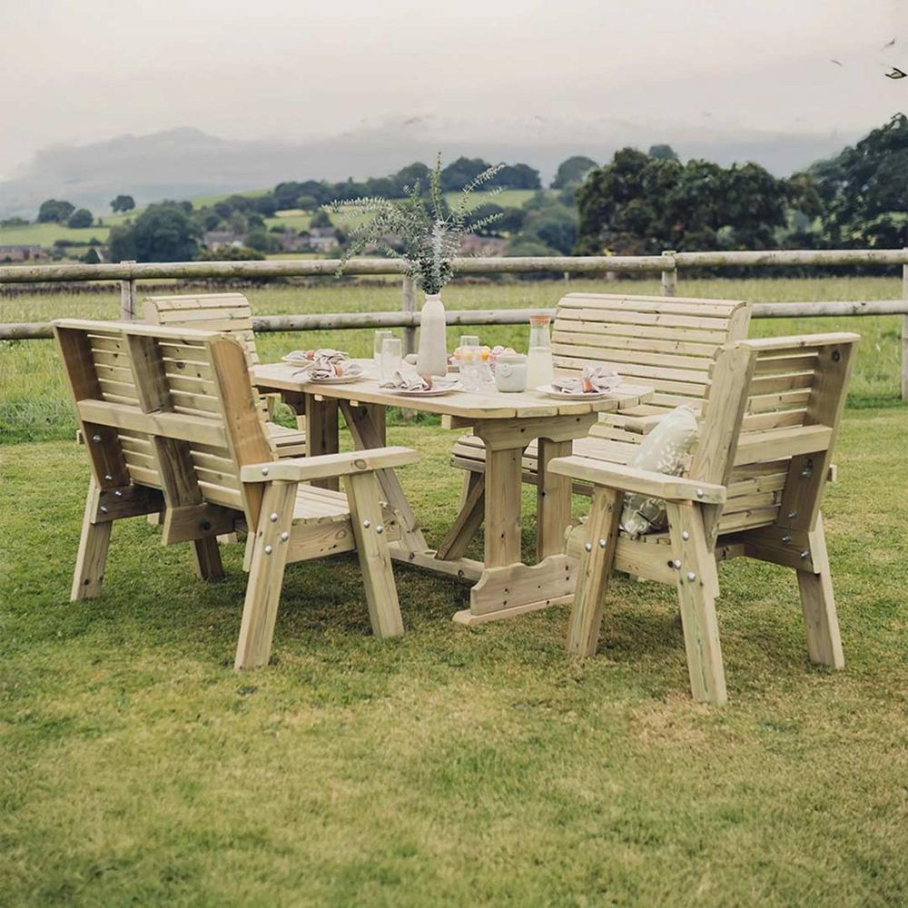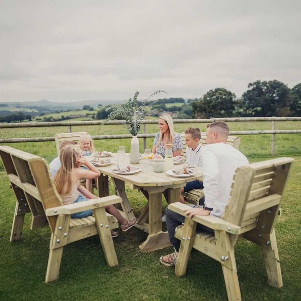 Wooden outdoor dining set handmade in North Staffordshire. Get the best British made garden products from Churnet Valley Garden Furniture where we make quality wooden garden products using the finest Scandinavian Redwood and pressure treat it so it creates a product that will truly last for decades to come.