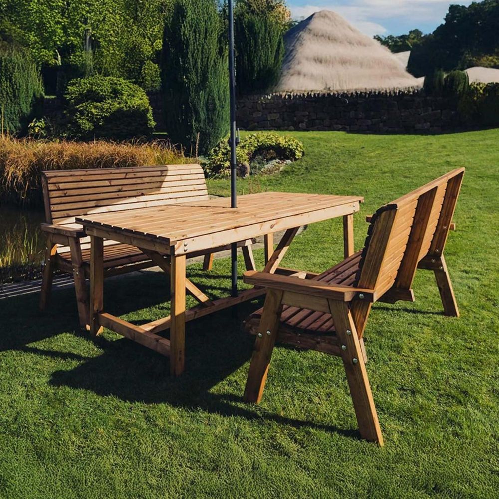 Churnet Valley Redwood Garden Table Set with 2 Seater Benches