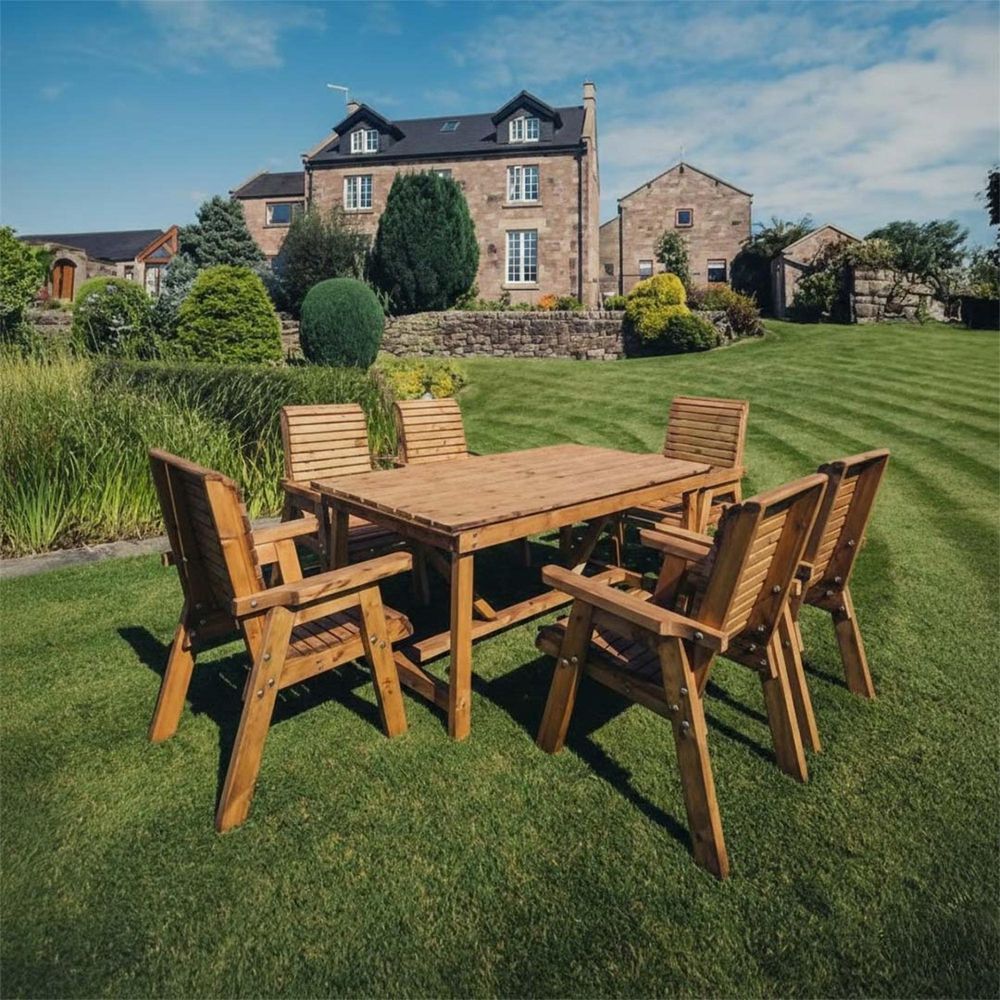Churnet Valley Redwood Garden Table Set with 6 Chairs