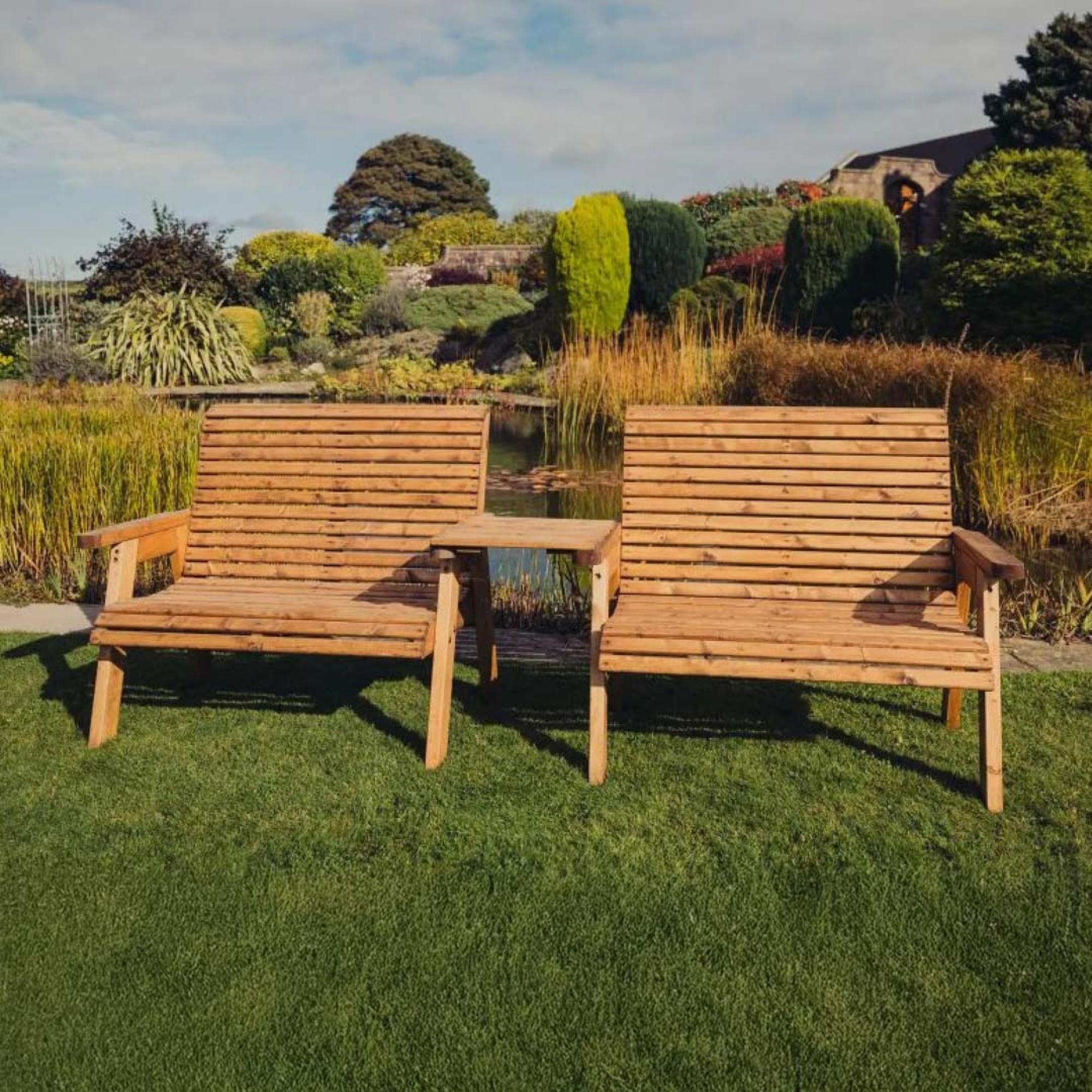 Churnet Valley Redwood Straight 2 Seater Garden Benches Set