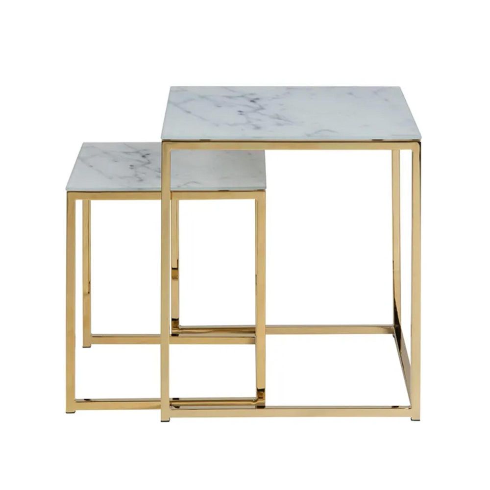 Clearance - Alisma Nest of 2 Tables - White Marble Effect and Gold - A407