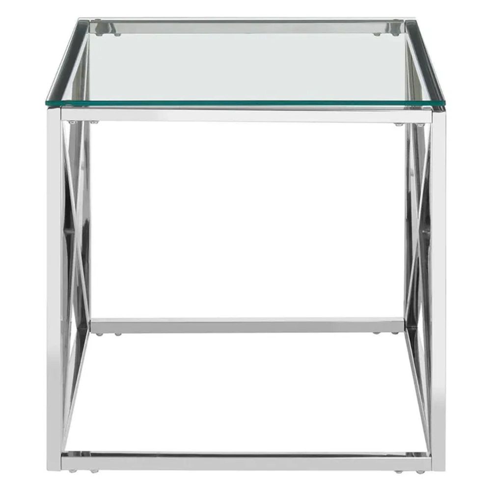 Clearance - Allure End Table - Square - Clear Glass - Silver Cross Base - FSS16570