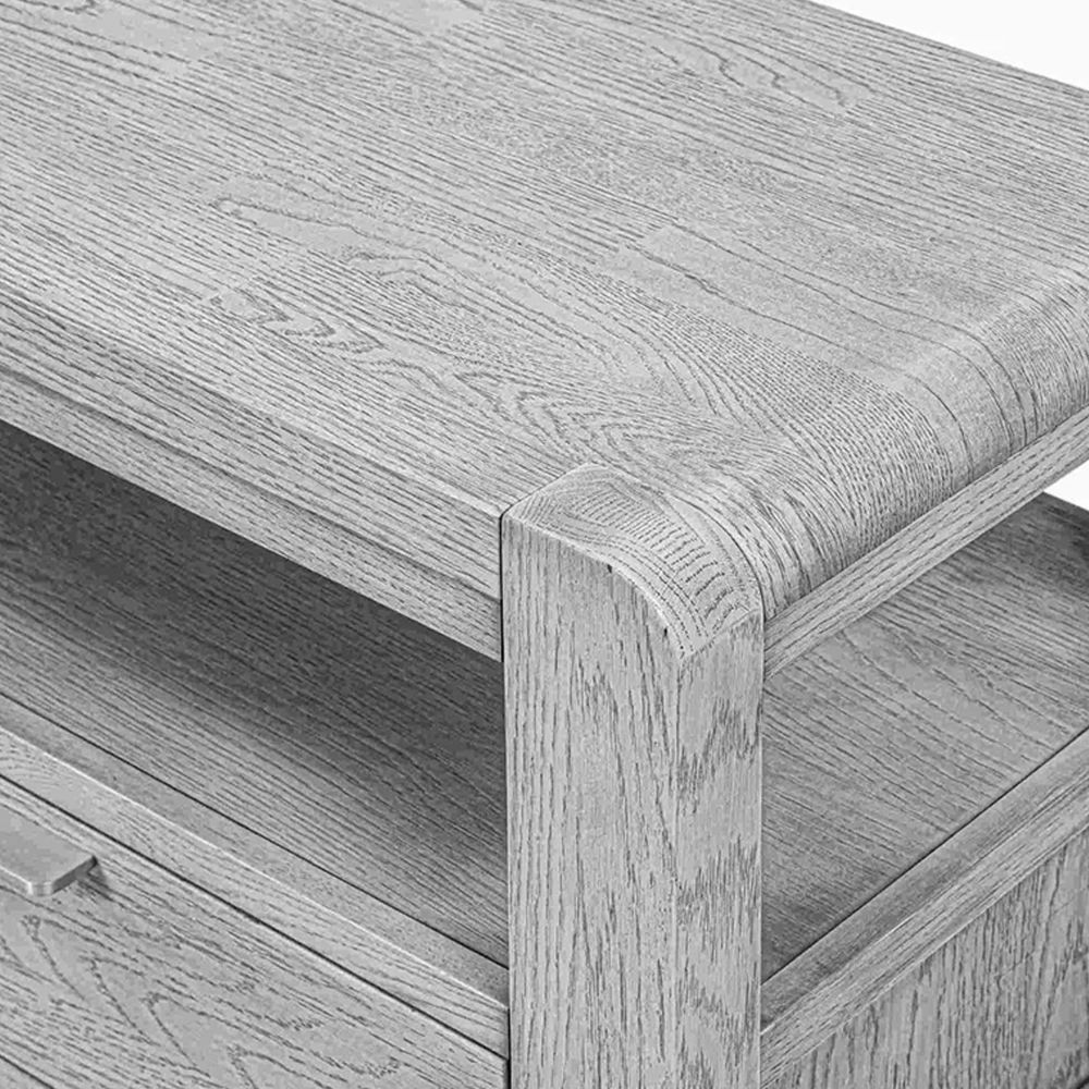 Combine modern style with practical functionality in your living room with the Amsterdam Grey Washed Oak 140cm TV Unit. Crafted from solid oak and real oak veneers, this unit is built to last while showcasing a grey-stained finish that enhances the wood’s natural grain. Designed to accommodate your TV and media essentials, it is both a stylish and functional addition to your home.