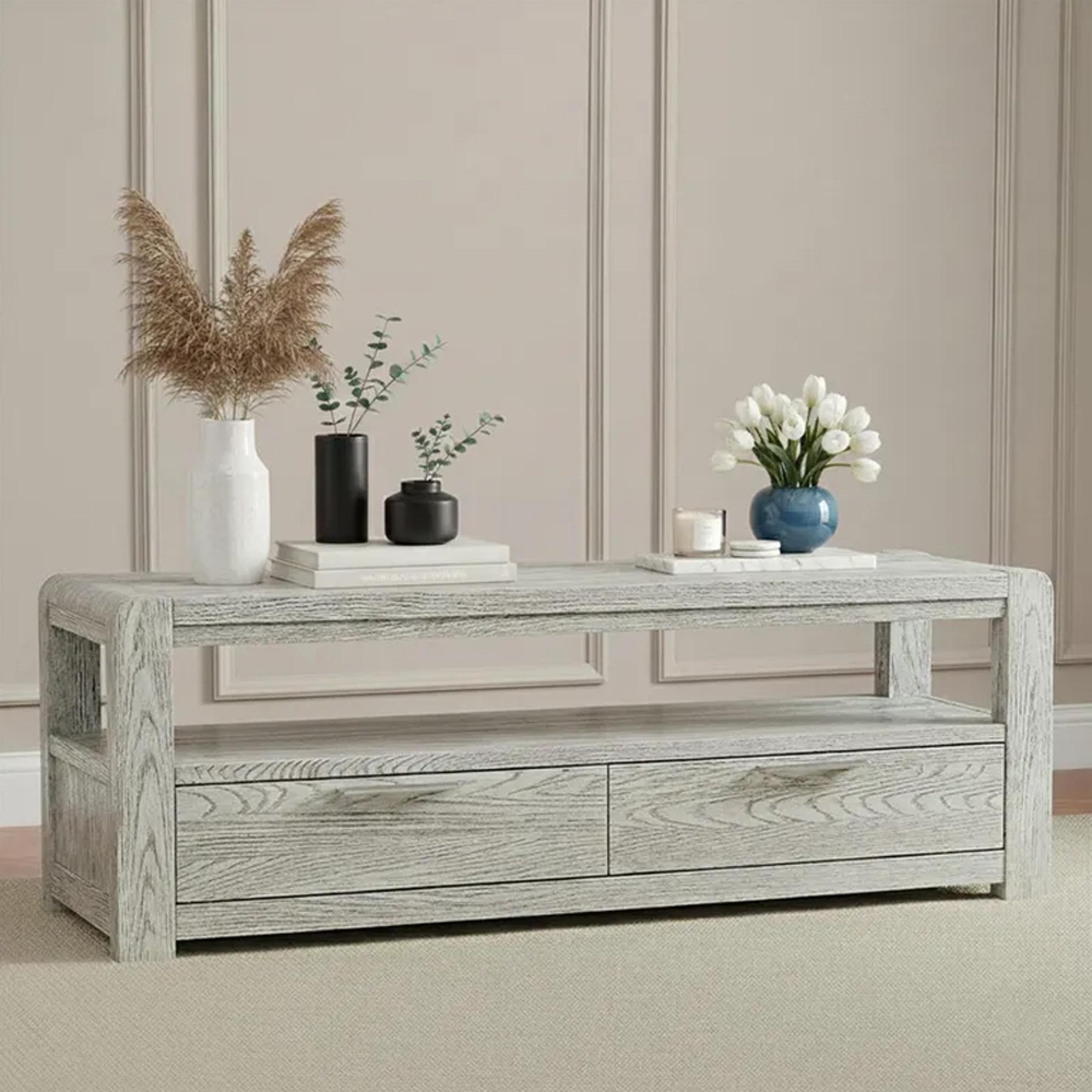 Clearance - Amsterdam TV Unit - 2 Drawer - Grey Washed Oak - FSS16589