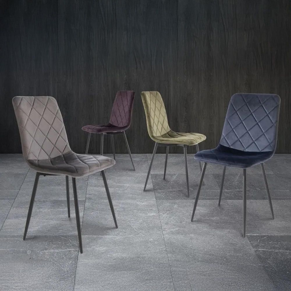 Clearance - Bella Dining Chair - Set of 2 - Cross Stitched - Aubergine Velvet Fabric - A423