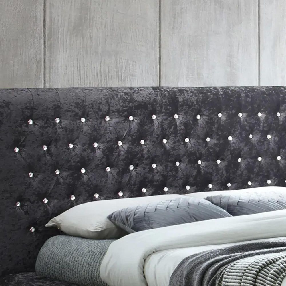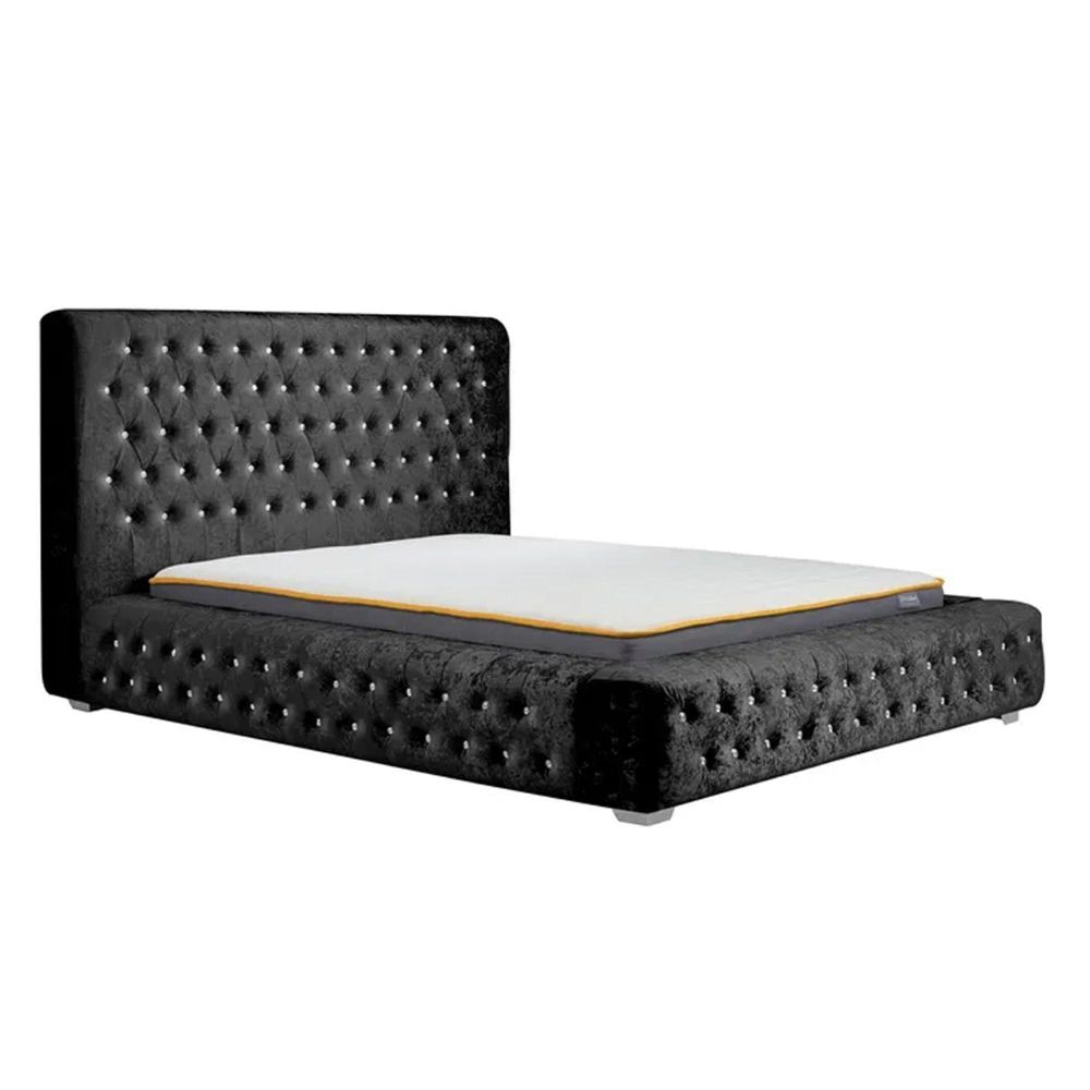 Clearance - Grande Bed - 6ft Queen Size - Black Crushed Velvet Fabric - FSS16604