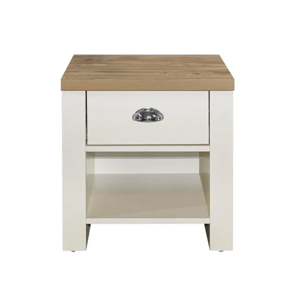Item Code: HIG1LTCRO Inspired by classic farmhouse furniture the Highgate range has been designed to complement both modern and traditional homes.The Highgate range is modern, practical, affordable furniture and with stylish silver handles looks fantastic too.Available in cream & oak, grey & oak and navy & oak this range will suite a wide array of interiors.Bringing contemporary style and practicality to your home, this Highgate 1 Drawer Lamp Table is great for storage and decoration.Featuring a handy drawer with a satin silver handle and a useful storage shelf underneath, this is a great place to store your favourite nighttime read or a comforting lamp.Care instructions: Wipe carefully with a soft, dry cloth.The internal measurements of this lamp table are 319mm height by 212mm wide.This item is listed as clearance and available on first come first serve basis once ordered can not be cancelled.