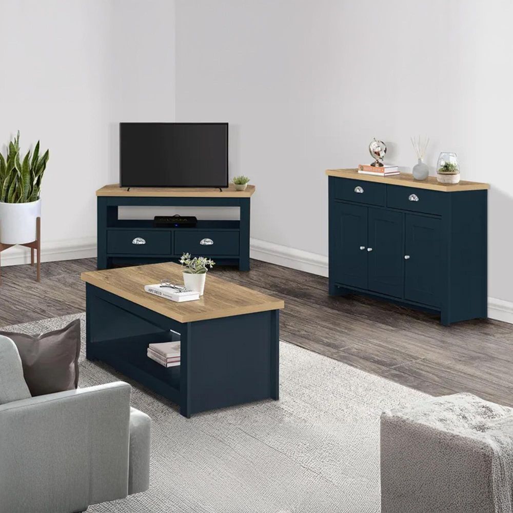 Clearance - Highgate Medium Sideboard - 3 Door - Navy Blue Painted - FSS16565