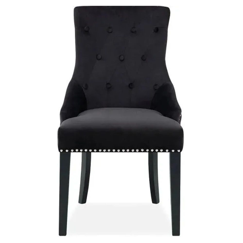 Clearance - Lion Knockerback Dining Chairs - Set of 2 - Black Velvet Fabric - FS271