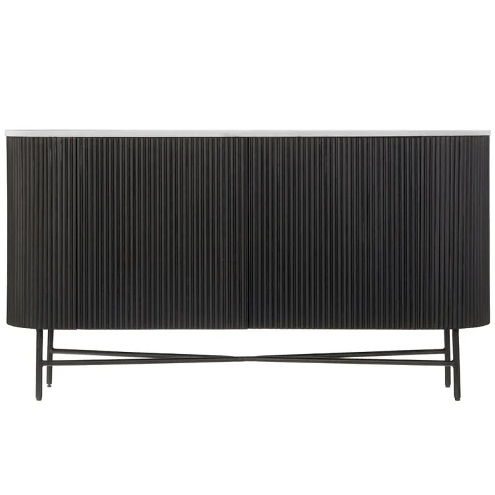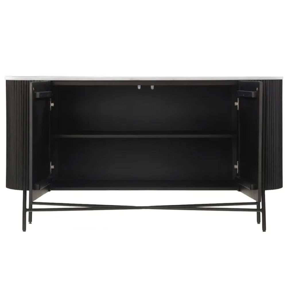 Clearance - Lucas Black Sideboard - 2 Door - 150cm - Medium - Fluted Curved - White Marble Top - FSS16584