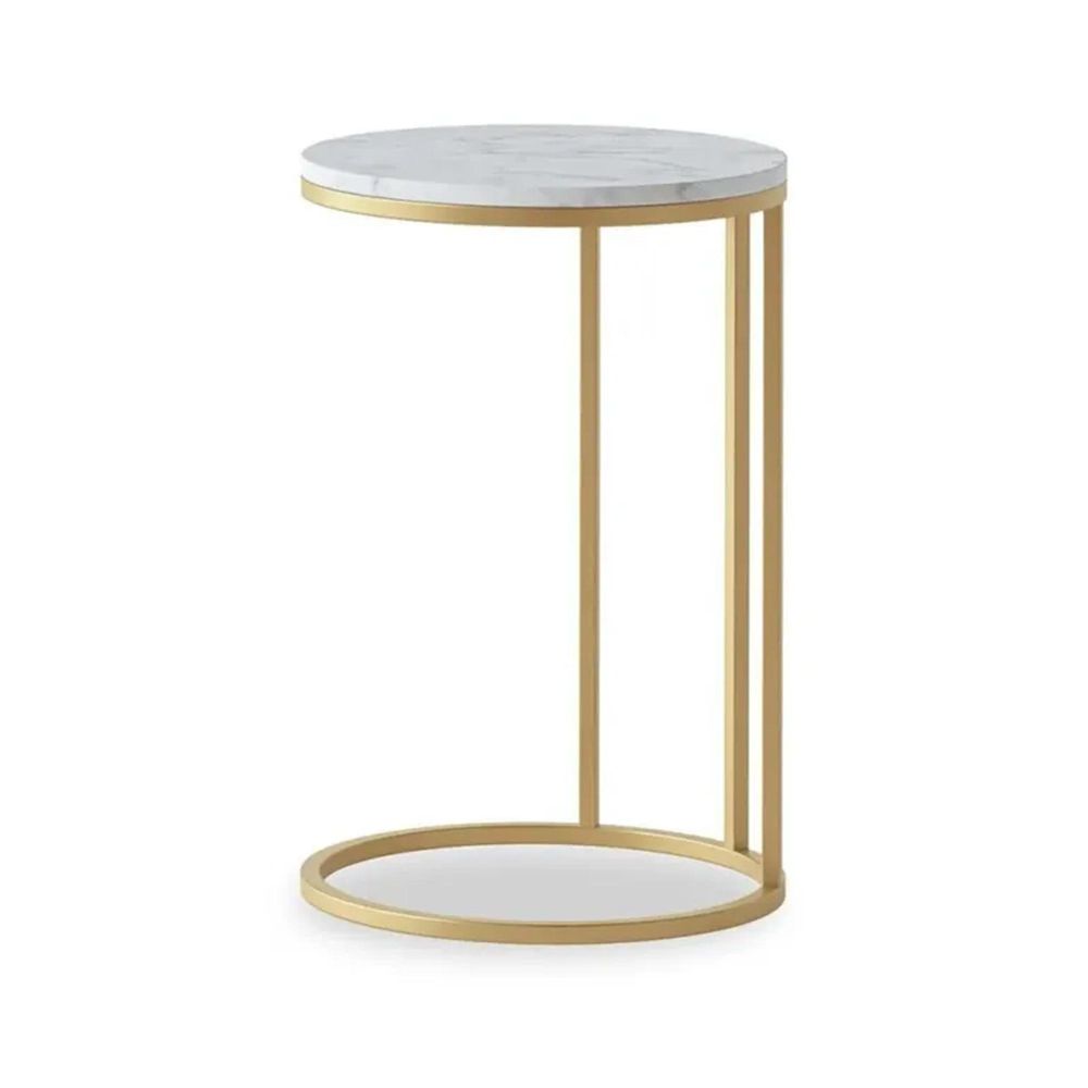 The C-shaped frame in a powder-coated gold finish allows the table to slide neatly under sofas or chairs, providing a convenient surface for drinks, snacks, laptops, or decorative accents. Compact yet elegant, it is perfect for everyday use and entertaining.