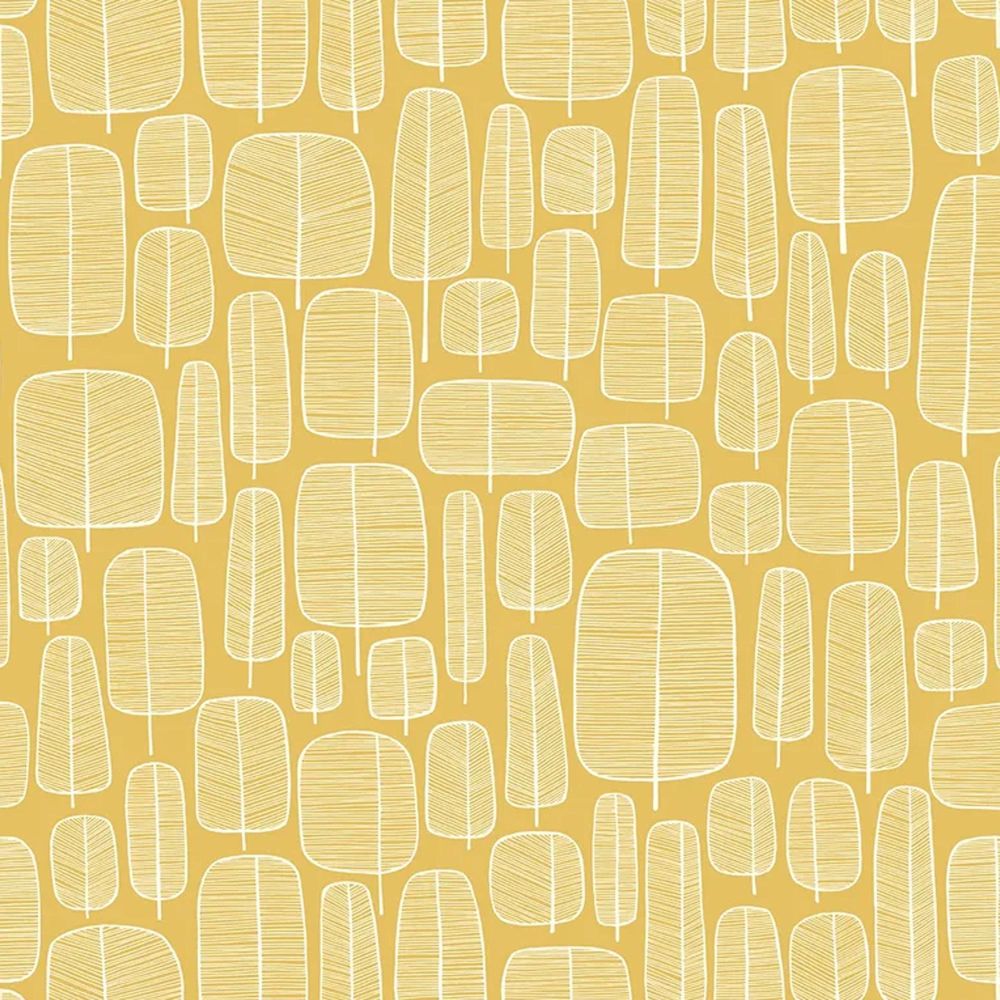 Item Code: ROLF-2469TTR This scandi-inspired screen-printed design features sketch-book style trees of white over a zesty yellow background to create a warm and welcoming minimalistic style.