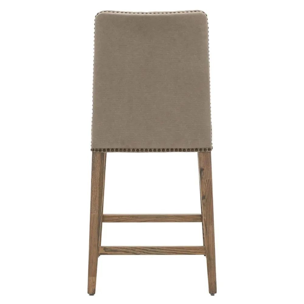 Item Code: G-5059413872679 This item is listed as clearance and available on first come first serve basis once ordered can not be cancelled.et of 2 comfortable and chic bar stools. Upholstered in cement grey linen, these bar stools fit seamlessly into a variety of spaces, from modern to traditional. Finished off with brass nail head details and simple angled legs.